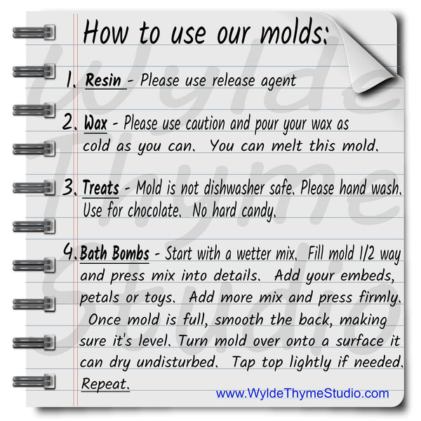 Prolonged exposure to temperatures exceeding approximately 180º F may irreversibly deform the molds. Prolonged exposure to direct sunlight may induce stress cracking. For best results, we recommend hand washing our molds using normal dish washing detergents, avoiding abrasive type scouring pads. LDPE can be susceptible to scratching which may complicate unmolding.